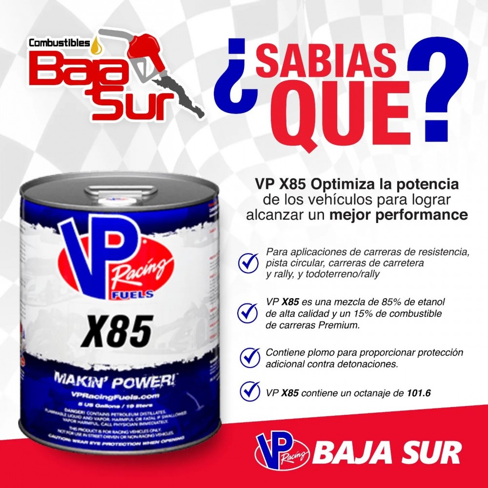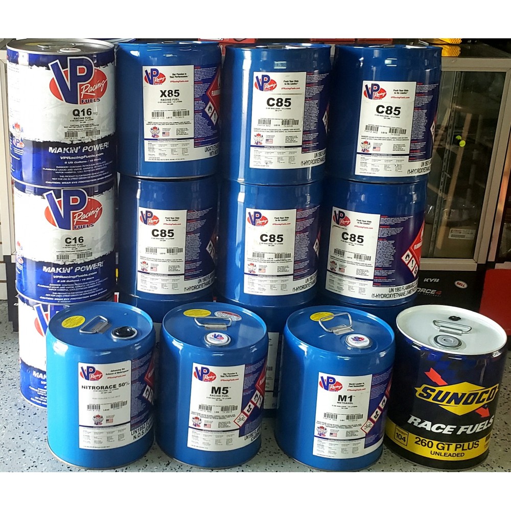 Disponibles Bidones de 5 Galones 19 Litros de X85 85% E85 Etanol y Gasolina de Carreras Marca VP Racing USA Sellados.