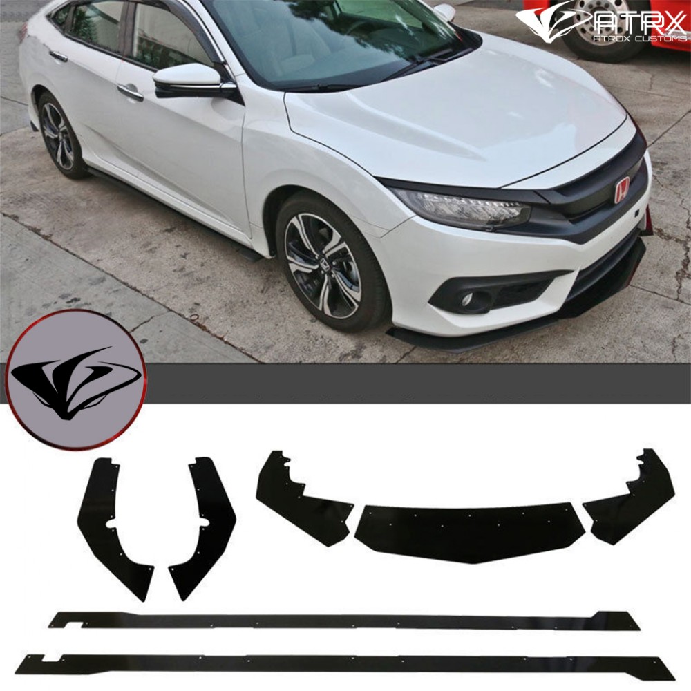 Body Kit Estribos, Colmillos Faldones y Esquineros para Honda Civic Sedán líneas 2016 a 2018, todas las versiones.