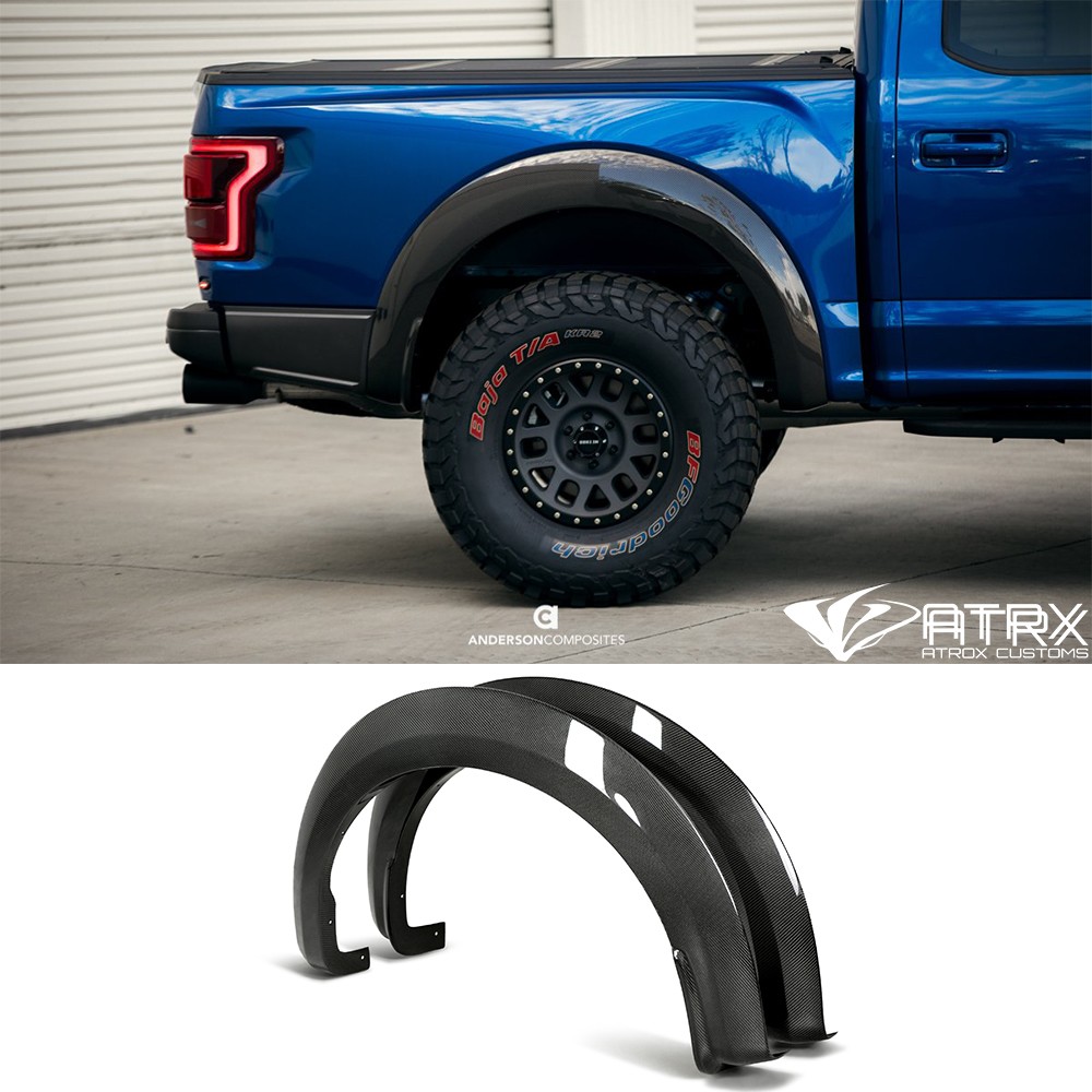 Cantoneras Traseras Type OEM Anderson Composites Fabricadas en Fibra de Carbono para Ford F150 Raptor; línea 2017 - 2020.