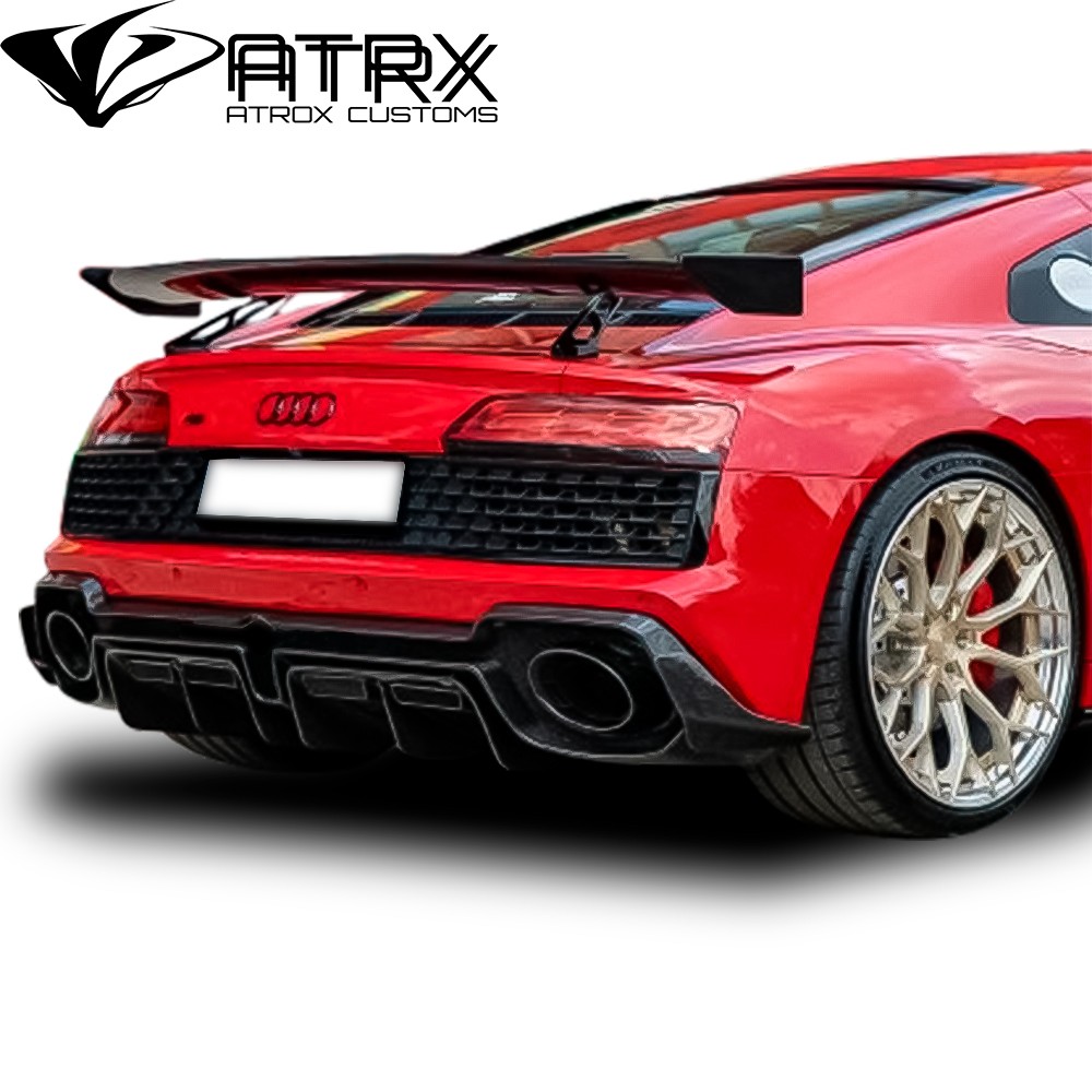 - No solo añade estética y plusvalía a tu Audi R8, este difusor está diseñado para optimizar el flujo del aire en la parte trasera, mejorando la carga aerodinámica y la estabilidad a altas velocidades. Su diseño marcado y robusto le da una apariencia más deportiva y radical, haciendo que tu R8 luzca más poderoso.