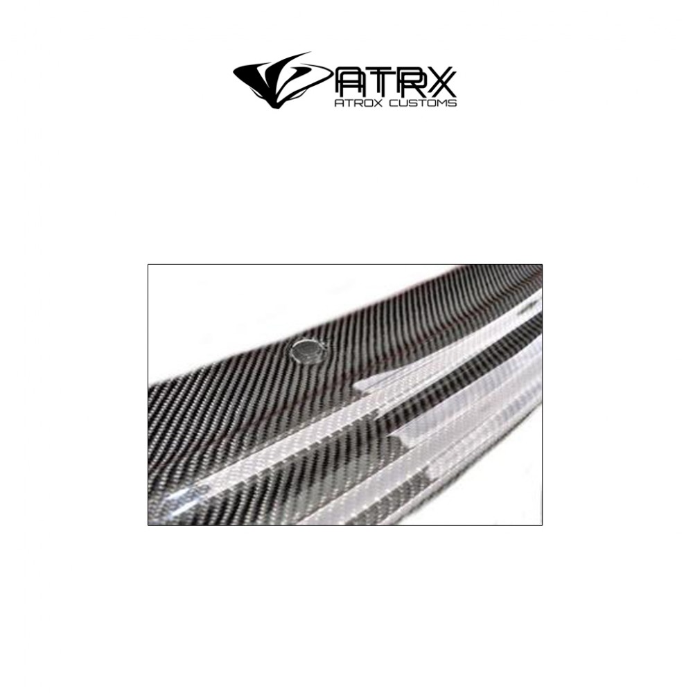 - Fabricado en fibra de carbono (Carbon Fiber) de alta calidad, acabado pulido recubierto de Gel-Coated con parte inferior negra plana que Brinda protección contra la humedad, la radiación solar, y el rayado aumentando el tiempo de vida útil de su pieza.