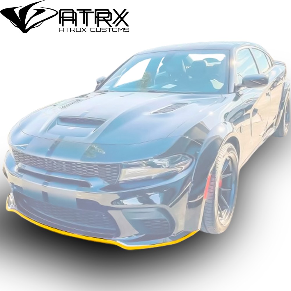 Protector Lip Bumper Fascia para Dodge Charger Widebody líneas 2015 - 2023. Compatible con versiones que tienen la fascia frontal del Widebody igual que en las imágenes.